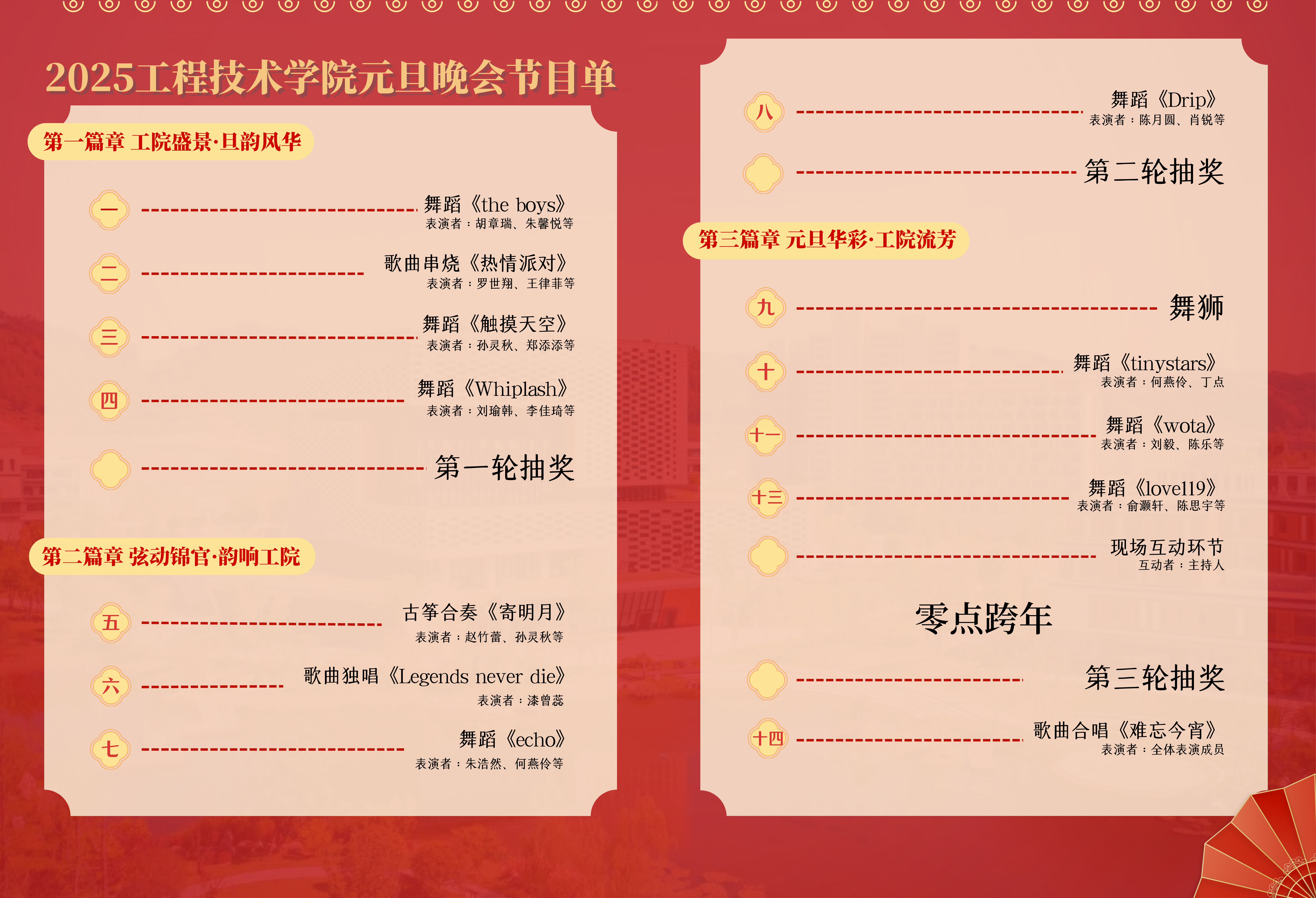 以“马到成工,共赴新元”为主题的元旦跨年晚会,将通过音乐、舞蹈、话剧与创意互动串联起 2025 年度的精彩瞬间,邀你与全校师生共迎跨年倒计时,见证新一年愿望开启。